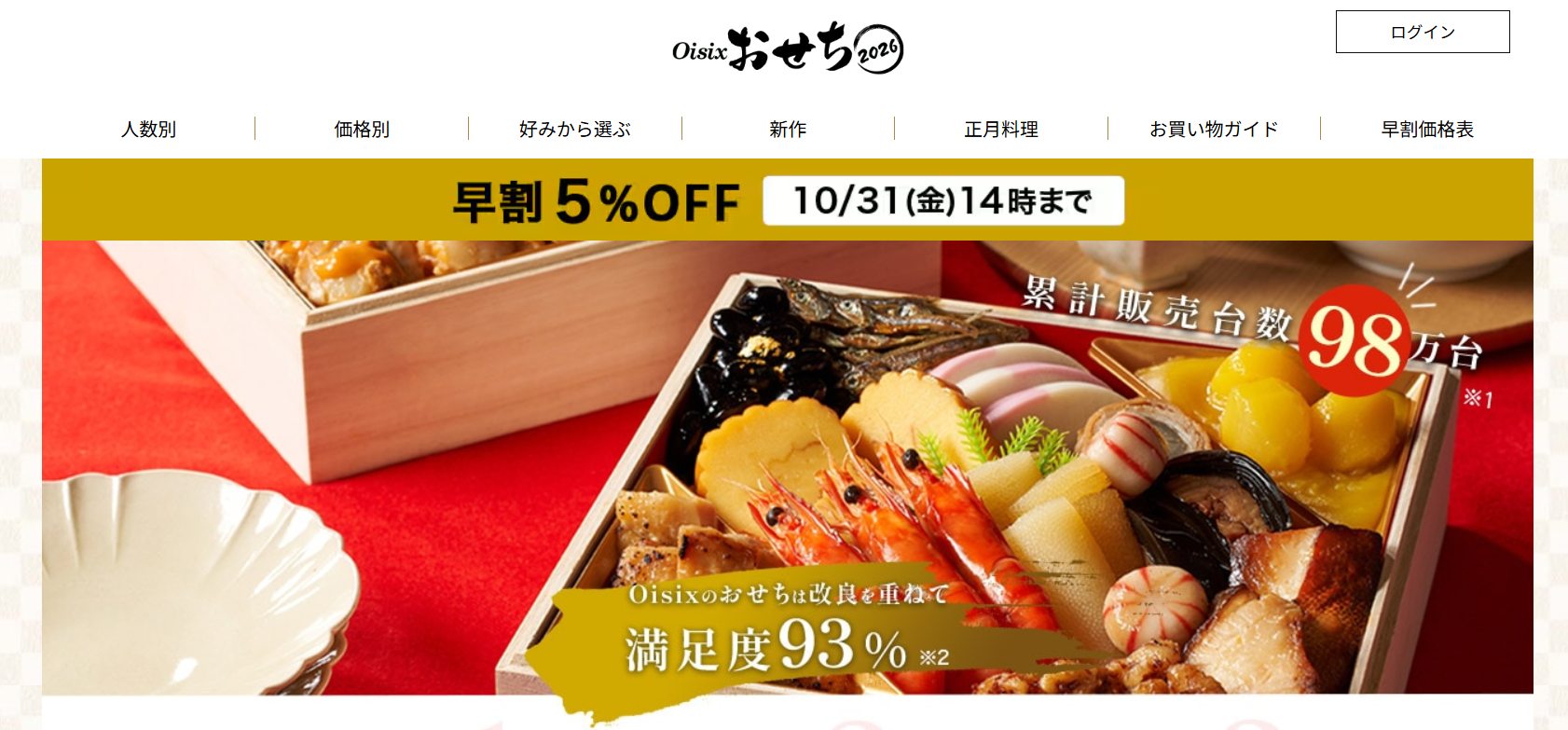 【PR】oisixおせち \お得な早割は今だけ!/ 今すぐネット予約 <目次> お得なキャンペーン 配送日時について 賞味期限について おすすめおせち よくある質問 毎年完売の人気おせち、今年も登場!毎年売り切れ続出の人気おせちをご紹介(*‘∀‘)こちらのサイトでは毎年アンケートをとり、改良を重ねながら1年かけて作り上げられた、こだわりが詰まったおせちを購入できます✨解凍するだけなので、手間いらずで本格おせちを味わえちゃいます♪ ●お得なキャンペーン● ☆10月31日14時まで、早割5%OFF!☆2台以上購入で1,000ptプレゼント!(組み合わせは自由)☆全国どこでも送料無料! 今すぐネット予約 ●配送日時について● 2025年12月26日(金)午前8時までにご注文すると、・慶梅、上慶梅をご注文の場合→2025年12月28日(日)・29日(月)・30日(火)、2026年1月1日(木)・2日(金)・3日(土)・そのほかのおせちをご注文の場合→2025年12月29日(月)・30日(火)・31日(水)、2026年1月1日(木)・2日(金)・3日(土)から、ご希望のお届け日をお選びいただけます。 今すぐネット予約 ●賞味期限について● 冷凍庫(-18度以下)で保存した場合、慶梅、上慶梅は2026年2月28日(土)まで、それ以外の商品は2026年3月31日(火)までとなり、解凍後は冷蔵保存で2日以内にお召し上がりください。 今すぐネット予約 \迷ったらコレ!/ ●おすすめおせち● 洋風と和風品目が充実!定番人気のロングセラーおせち。和風も洋風も楽しめて、さらに甘味も充実!子どもから大人まで美味しく楽しめます♪\今だけの早割価格/税込18,160円 今すぐネット予約 定番&オードブル!和風も洋風も楽しめる定番おせちに、乾杯シーンにもぴったりなオードブルが充実それぞれ単品で購入するよりも、3,000円以上お得に\今だけの早割価格/税込30,990円 今すぐネット予約 伝統的な和風品目が充実!おせちの定番から凝った品目まで、心ゆくまで和風おせちを楽しめます♪\今だけの早割価格/税込20,310円 今すぐネット予約 大人数におすすめ!各品目が5個ずつ入っているので、みんなで仲良く楽しめます♪和洋品目も充実していて、こだわりが詰まったおせちです\今だけの早割価格/税込27,590円 今すぐネット予約 ▼その他のおせちはこちら▼ 今すぐネット予約 ●よくある質問● なんで冷凍なの? 鮮度を保つため、調理、盛りつけ後に急速冷凍をされています。これは作り立てのおいしさを、食べるその瞬間まで封じ込めておくため。また、冷凍だからこそ、保存のために余計な保存料を使ったり、必要以上に味を濃くすることがなく、素材本来の味を楽しめるように工夫されています。 送料について すべての商品は「送料込み価格」となっております。ページに記載の価格以外、追加のご請求はありません。遠方料金や冷凍手数料などは一切なし。 代金の支払うタイミングはいつ? 支払いはおせちの発送後に請求となります。 全額返金保証制度とは? 万が一、味に納得できなかった場合はお一人さま一回限り、全額返金してくれるという制度です。<条件>①商品到着後1週間以内に、不具合の具体的な状況をメールで連絡すること。②商品の7割以上を残した状態で返品すること。また、今後の品質改善のため、電話で詳細を聞くこともあるようです。 ぜひお得に購入できるうちに予約して、良い新年をお過ごしください(*^^*)✨購入する方は、⇩のバナーをクリック(*‘∀‘)b 商材名:oisixおせち2026年運営者:A.N※当サイトはアフィリエイトプログラムを利用し宣伝目的で作成しております。